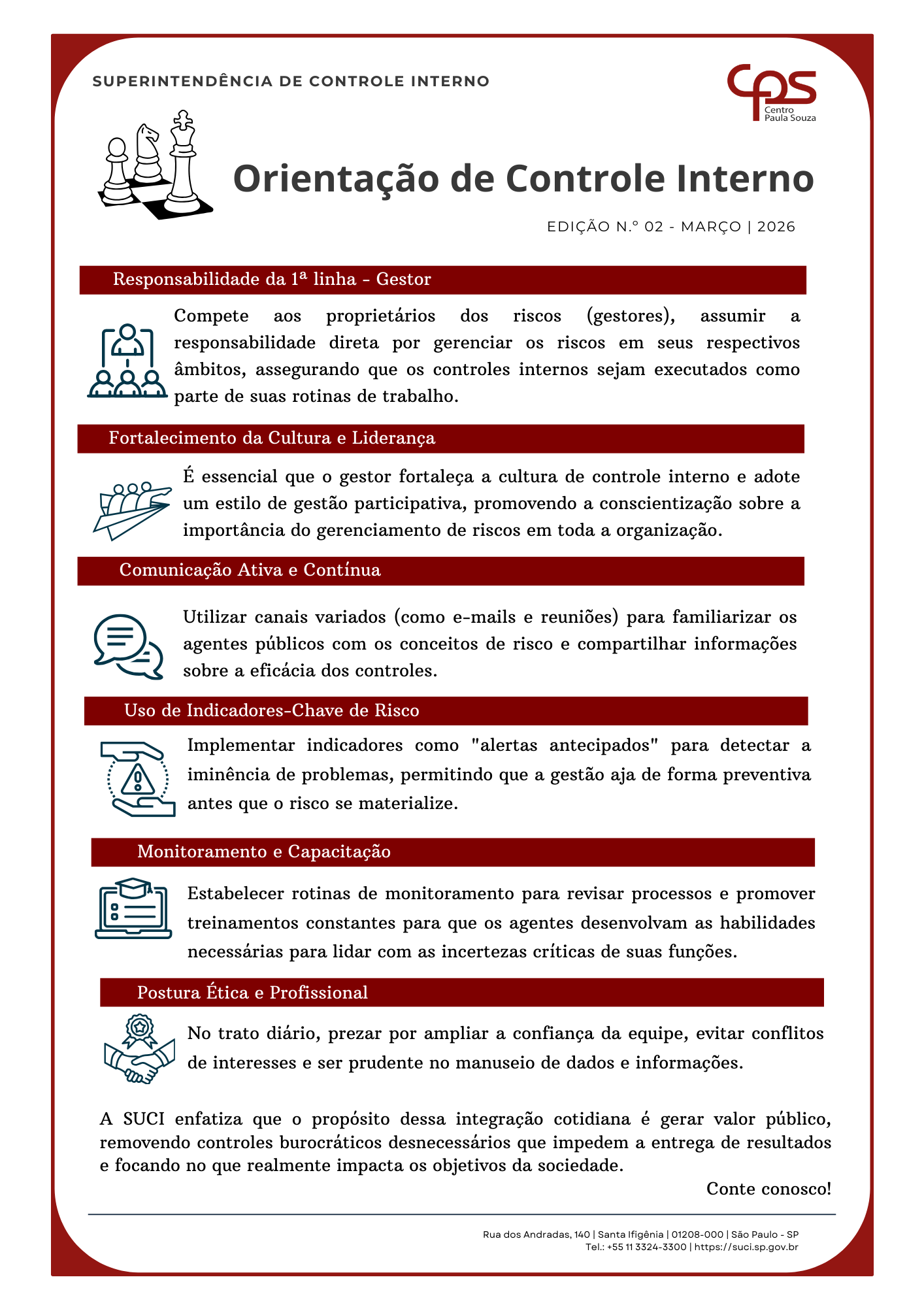 Apresenta os principais serviços da Controladoria Interna do CPS, como podcasts, informativos, conteúdo jurídico e ambientes de aprendizagem. Traz também guias, encontros e publicações para promover boas práticas e atualização constante.